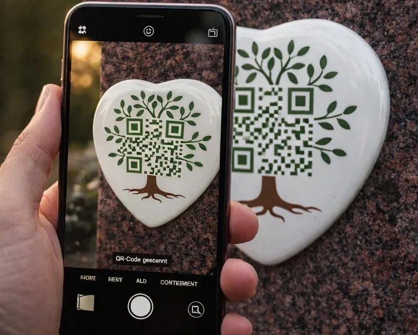 Der QR-Code von Memoryz verbindet Grabstein, Gedenkort oder Porzellan direkt
